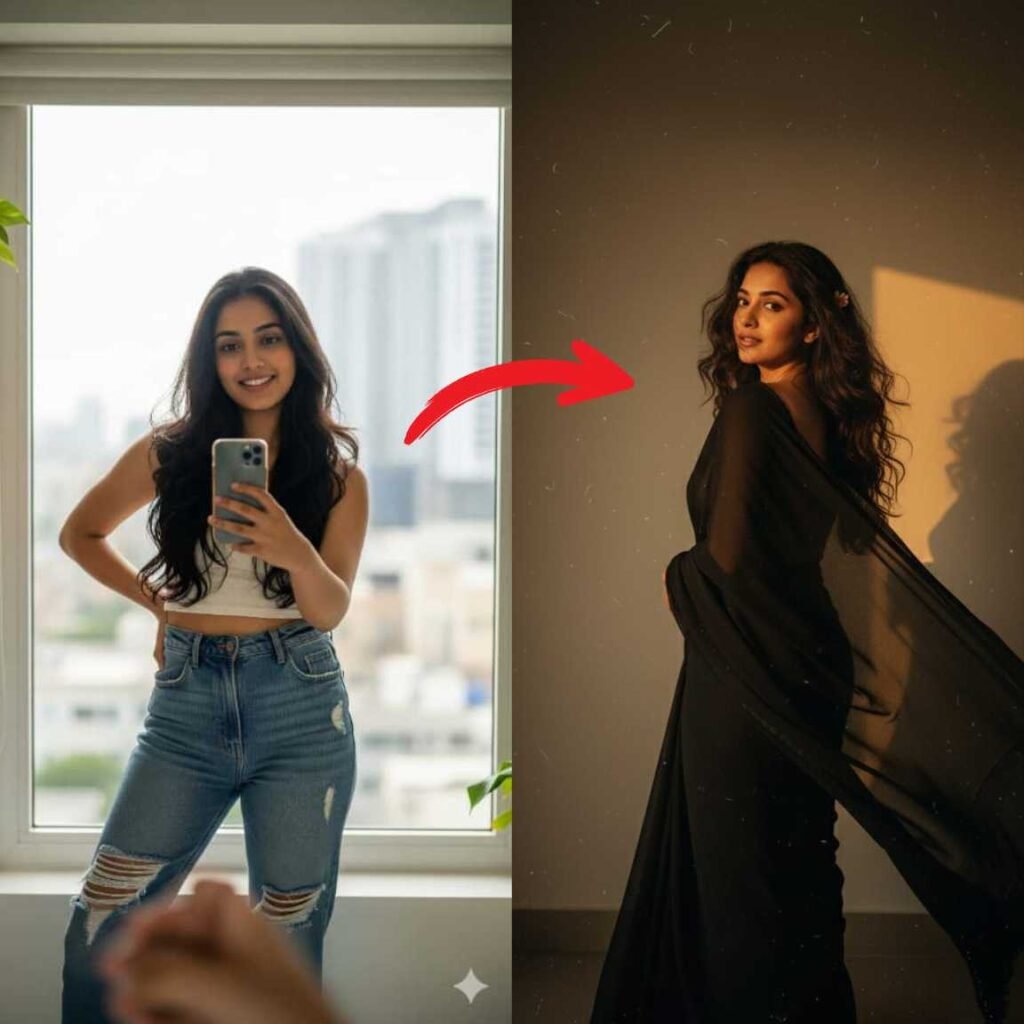 Feel free to change details like hair colour, saree shade, or background tone to match your personal style. For example: